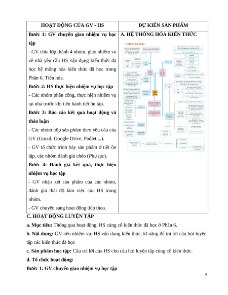 a. Mục tiêu: Hệ thống hóa lại các nội dung cơ bản và trọng tâm trong Phần 6. Tiến hóa.
