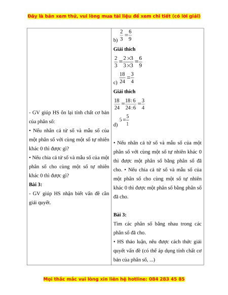 phân số; áp dụng tính chất cơ bản của phân số để so sánh hai phân số, tìm hai phân
