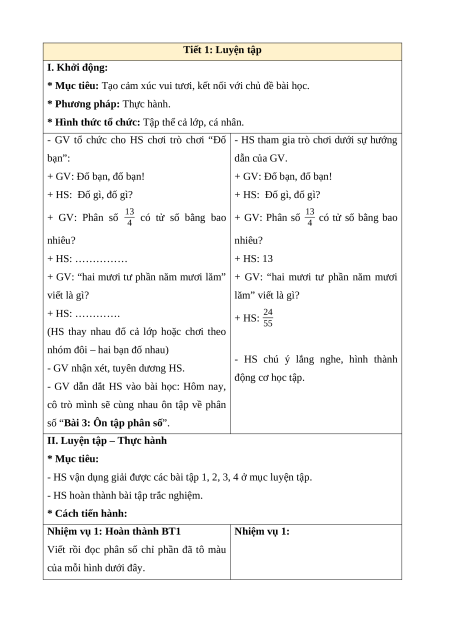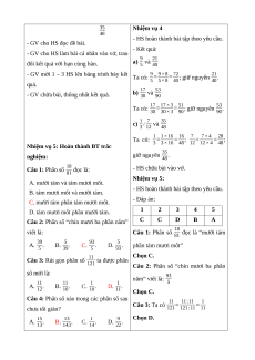 Giáo án Ôn tập phân số Toán lớp 5 Kết nối tri thức