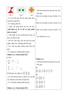 - HS hoàn thành bài tập theo yêu cầu. - Kết quả: a) 24 =12=3 36 ; = 6 = 2 =10 18 56 72 40 20 5 54 9 3 15