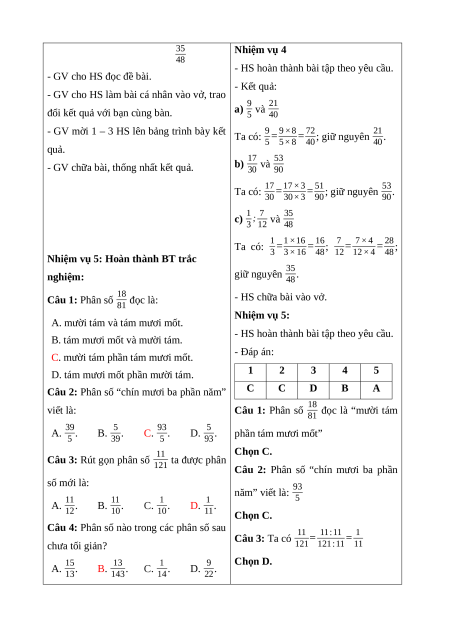 Vậy phân số tối giản là . 9 Chọn C. b)