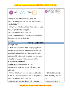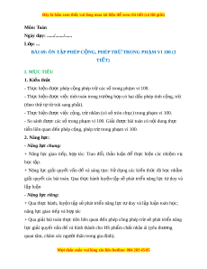 BÀI 69: ÔN TẬP PHÉP C N Ộ G, PHÉP TR Ừ TRONG PH M Ạ VI 100 (3 TIẾT) I. M C Ụ TIÊU 1. Ki n t ế h c ứ - Th c hi ự n đ ệ ư c ợ phép c ng phép t ộ r các s ừ ố trong ph m ạ vi 100. - Th c hi ự n đ ệ ư c ợ vi c t ệ ính toán trong trư ng ờ h p có hai ợ d u phép t ấ ính c ng, t ộ r ừ (theo th t ứ t ự t ừ rái sang ph i ả ). - Th c hi ự n đ ệ ư c ợ vi c c ệ ng, ộ