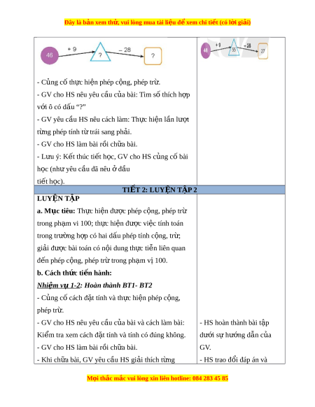 Đây là bản xem th , vu ử i lòng mua tài li u ệ đ xe ể m chi ti t (c ế ó l i ờ gi i ả ) 3. Phẩm ch t ấ + Yêu thích h c m ọ ôn Toán, có h ng ứ thú v i ớ các con số + Phát tri n t ể duy t ư oán cho h c s ọ inh II. THIẾT B D Ị ẠY H C Ọ VÀ H C Ọ LI U Ệ 1. Đ i ố v i