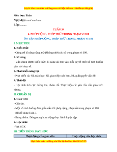 Ngày dạy: ....../ ....../ ...... L p: ớ ......... TUẦN 34 4. PHÉP C N Ộ G, PHÉP TR Ừ TRONG PH M Ạ VI 100 ÔN TẬP PHÉP C N