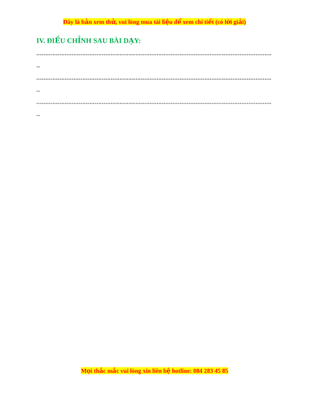 IV. ĐI U CH NH SAU BÀI D Y:Ề Ỉ Ạ