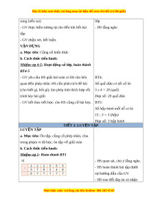 toán liên quan đ n phép nhân, phép chi ế a. 2. Năng l c: ự - Năng l c ự chung: + Năng l c ự giao ti p, ế h p ợ tác: Trao đ i ổ , th o ả lu n ậ để th c ự hi n ệ các nhi m ệ vụ h c ọ t p. ậ + Năng l c ự gi i ả quy t ế v n ấ đ ề và sáng t o: ạ S ử d ng ụ các ki n ế th c ứ đã h c ọ nh m ằ gi i ả quy t