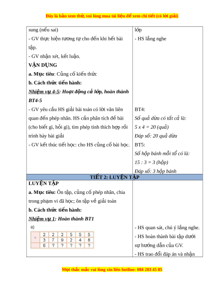 Đây là bản xem th , vu ử i lòng mua tài li u ệ đ xe ể m chi ti t (c ế ó l i ờ gi i ả ) sung (n u ế sai) l p ớ - GV th c ự hi n t ệ ư ng t ơ cho đ ự n khi ế h t ế bài - HS l ng ắ nghe t p. ậ - GV nh n xét ậ , k t ế lu n. ậ VẬN D N Ụ G a. Mục tiêu: C ng c ủ ố ki n t ế h c ứ b. Cách th c ứ ti n hàn ế h: Nhi m ệ v 4-