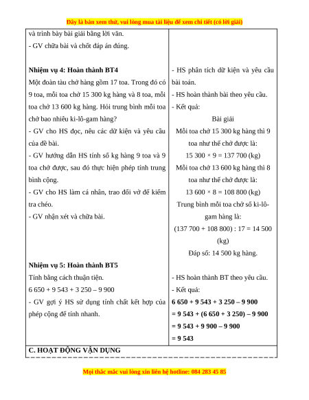Giáo án Ôn tập phép tính với số tự nhiên Toán lớp 4 Kết nối tri thức