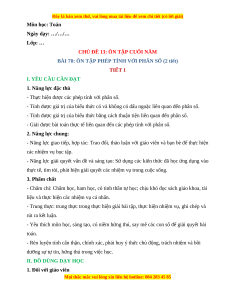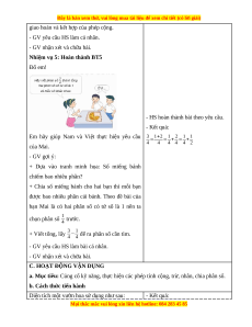 - Giải được bài toán thực tế liên quan đến các phép tính với phân số. 2. Năng lực chung: