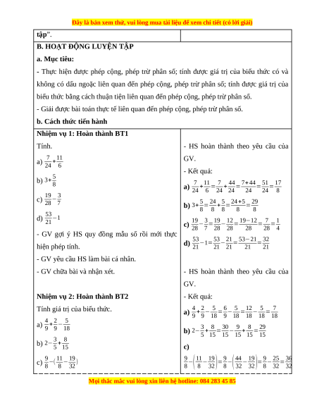 - Thực hiện được phép cộng, phép trừ phân số; tính được giá trị của biểu thức có và