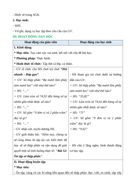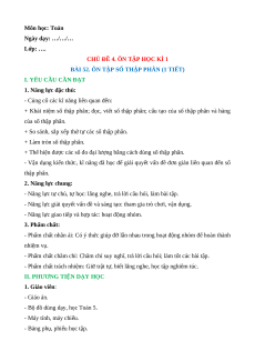 BÀI 52. ÔN TẬP SỐ THẬP PHÂN (1 TIẾT)