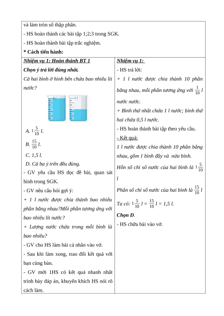 + 1 l nước được chia thành bao nhiêu 5 15 Ta có: 1 l = l = 1,5 l.
