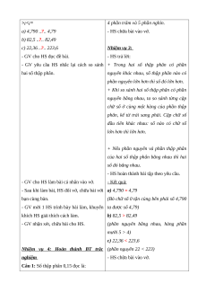 + Khái niệm số thập phân; đọc, viết số thập phân; cấu tạo của số thập phân và hàng của số thập phân.