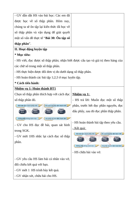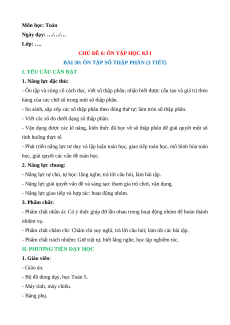BÀI 30: ÔN TẬP SỐ THẬP PHÂN (3 TIẾT)