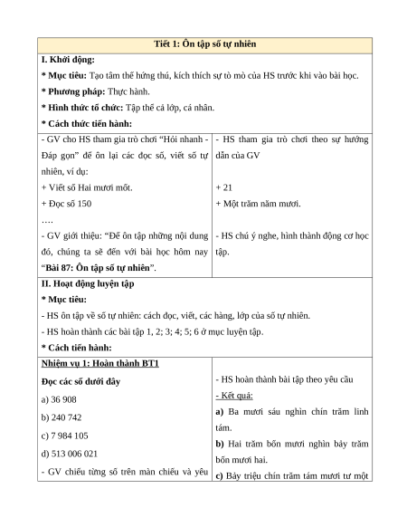 BÀI 87. ÔN TẬP SỐ TỰ NHIÊN (2 TIẾT)