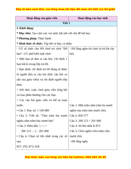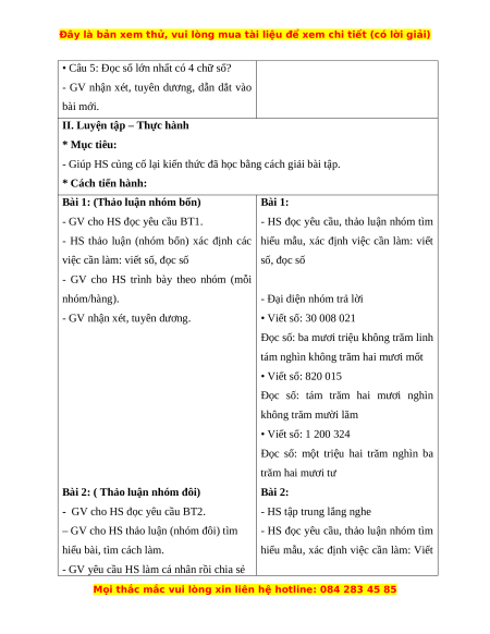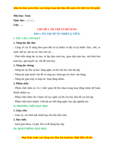 - Củng cố các kĩ năng liên quan đến số tự nhiên và dãy số tự nhiên: Đọc, viết, so