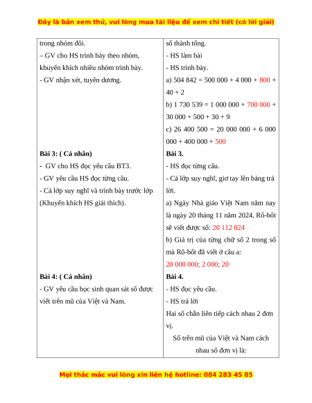 c) 26 400 500 = 20 000 000 + 6 000 000 + 400 000 + 500 Bài 3: ( Cá nhân) Bài 3.