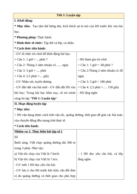 Giáo án Ôn tập toán chuyển động đều Toán lớp 5 Kết nối tri thức