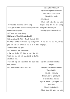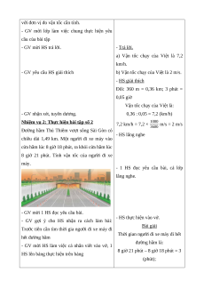 - GV nhận xét, tuyên dương. 0,36 : 0,05 = 7,2 (km/h) Nhiệm vụ 2: