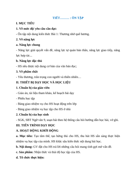 - Ôn tập nội dung kiến thức Bài 1: Thương nhớ quê hương. 2. Về năng lực a. Năng lực chung
