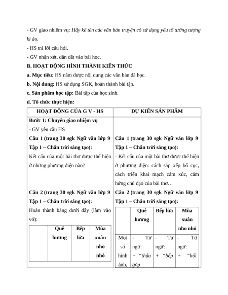 Giáo án Ôn tập trang 30 Ngữ Văn 9 Chân trời sáng tạo