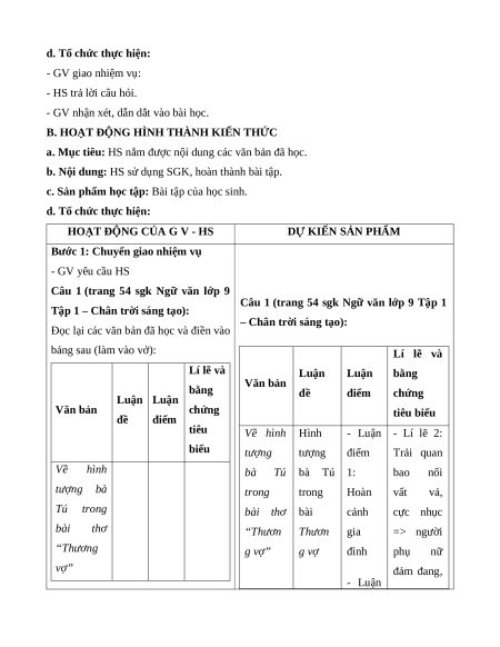 Giáo án Ôn tập trang 54 Ngữ Văn 9 Chân trời sáng tạo