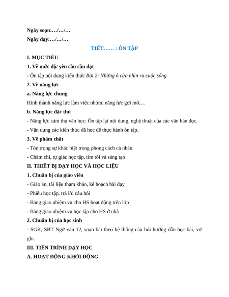 - Ôn tập nội dung kiến thức Bài 2: Những ô cửa nhìn ra cuộc sống 2. Về năng lực a. Năng lực chung