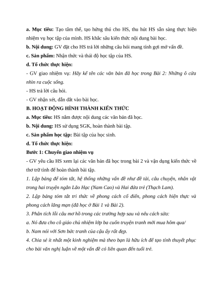 - GV yêu cầu HS xem lại các văn bản đã học trong bài 2 và vận dụng kiến thức về