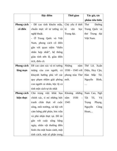 phong cách lãng mạn (đã học ở Bài 1 và Bài 2).
