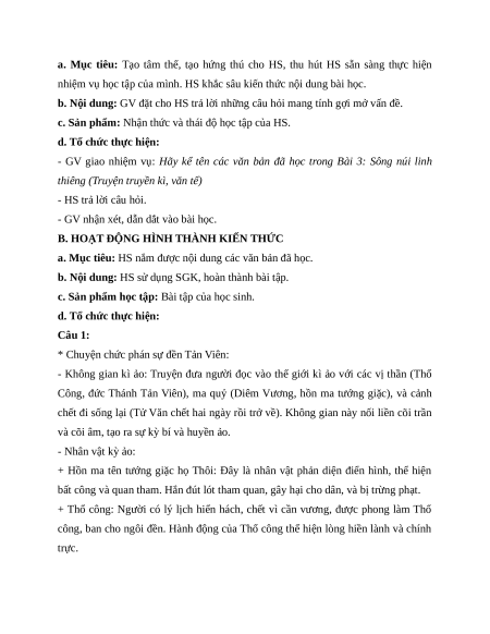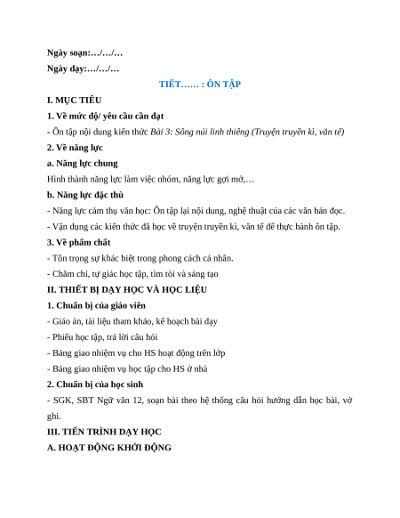 - Ôn tập nội dung kiến thức Bài 3: Sông núi linh thiêng (Truyện truyền kì, văn tế) 2. Về năng lực a. Năng lực chung