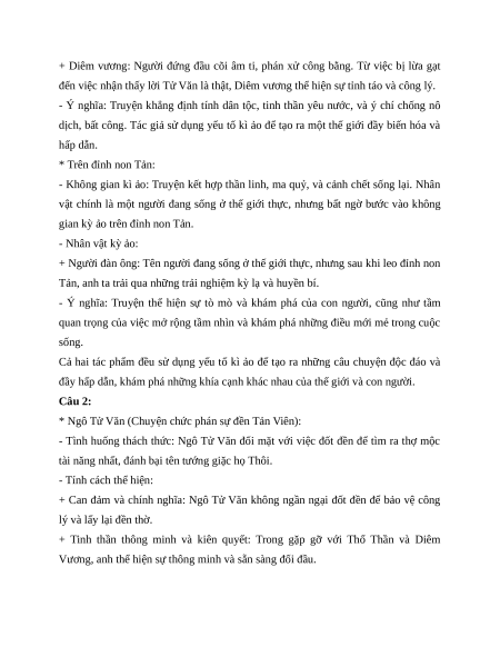 dịch, bất công. Tác giả sử dụng yếu tố kì ảo để tạo ra một thế giới đầy biến hóa và hấp dẫn. * Trên đỉnh non Tản: