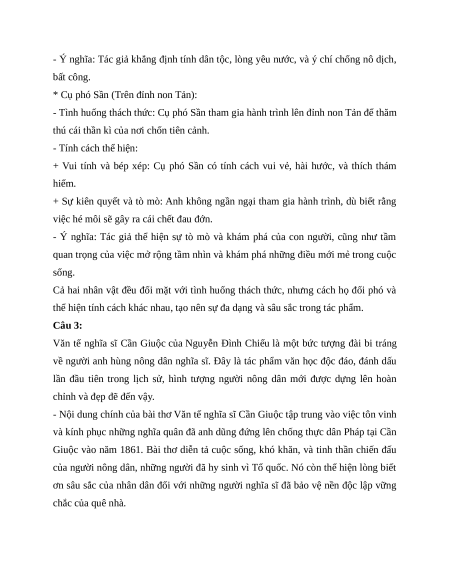thể hiện tính cách khác nhau, tạo nên sự đa dạng và sâu sắc trong tác phẩm. Câu 3: