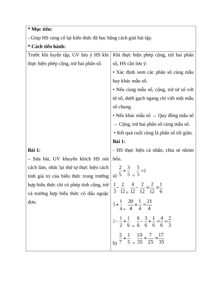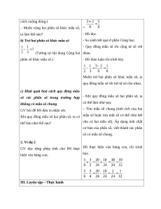 * Mục tiêu: Thực hiện được phép cộng, phép trừ hai phân số khác mẫu số bằng