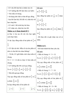 - Bổ sung: Thực hiện quy đồng hai phân số khác mẫu số bằng cách lấy mẫu số chung