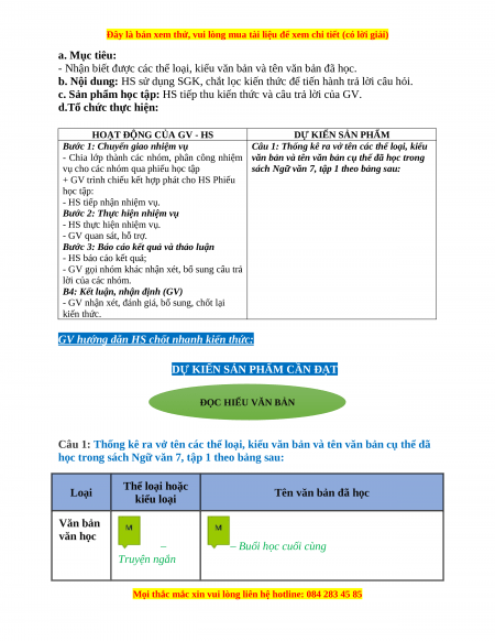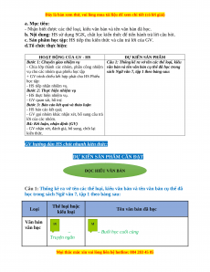 học trong sách Ngữ văn 7, tập 1 theo bảng sau: Thể loại hoặc Loại