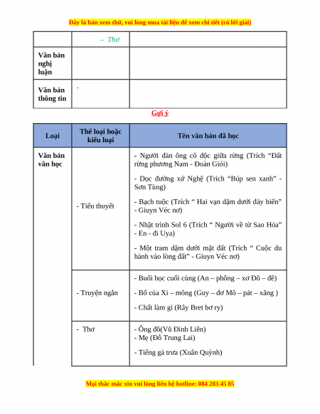 – Thơ Văn bản nghị luận Văn bản - thông tin Gợi ý Thể loại hoặc Loại