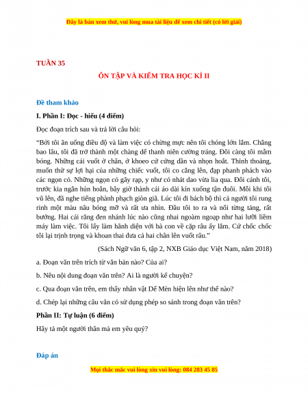 Đây là bản xem thử, vui lòng mua tài liệu để xem chi tiết (có lời giải)