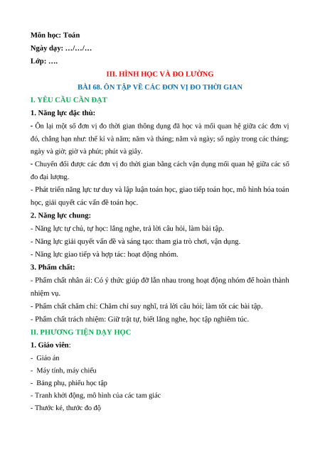BÀI 68. ÔN TẬP VỀ CÁC ĐƠN VỊ ĐO THỜI GIAN
