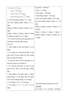 + Một tháng có 30 ngày hoặc 31 ngày,