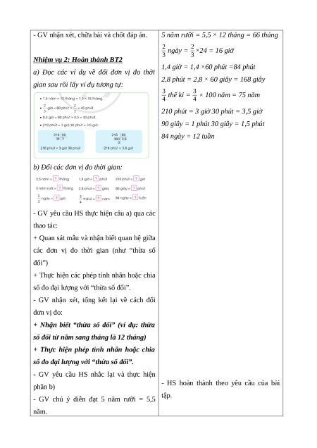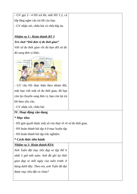 - Chuyển đổi được các đơn vị đo thời gian bằng cách vận dụng mối quan hệ giữa các số đo đại lượng.