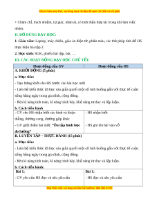 ọ sinh: SGK, phi u bài ế t p, ậ bút, … III. CÁC HO T Ạ Đ N Ộ G D Y Ạ H C Ọ CH Ủ Y U Ế Hoạt đ ng c ộ a G ủ V Hoạt đ ng c ộ a H ủ S A. KH I Ở Đ N Ộ G (5 phút) a. Mục tiêu: - T o h ạ ng ứ kh i ở cho HS bư c vào ớ bài h c m ọ i ớ - Liên h ki ệ n t ế h c ứ đã h c vào gi ọ i ả quy t ế m t ộ s t ố ình hu ng g ố n v ắ i ớ th c t ự ế cu c ộ sống h ng