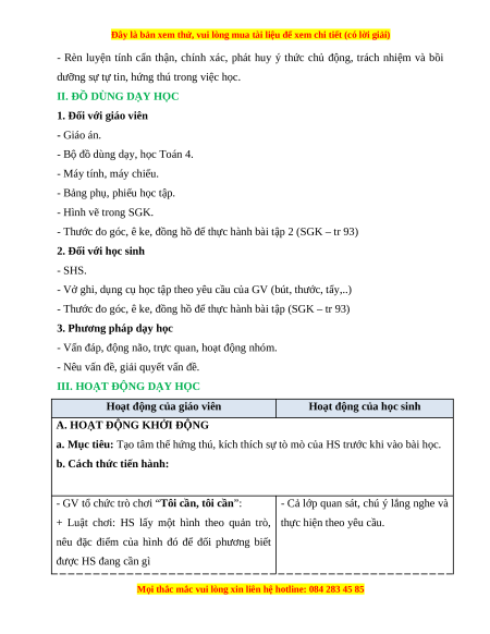 - Thước đo góc, ê ke, đồng hồ để thực hành bài tập (SGK – tr 93)