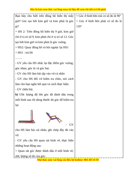 biết góc tạo bởi kim giờ và kim phút là góc yêu cầu của GV.