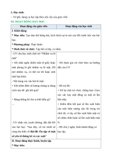 - Năng lực giao tiếp và hợp tác: hoạt động nhóm. 3. Phẩm chất: