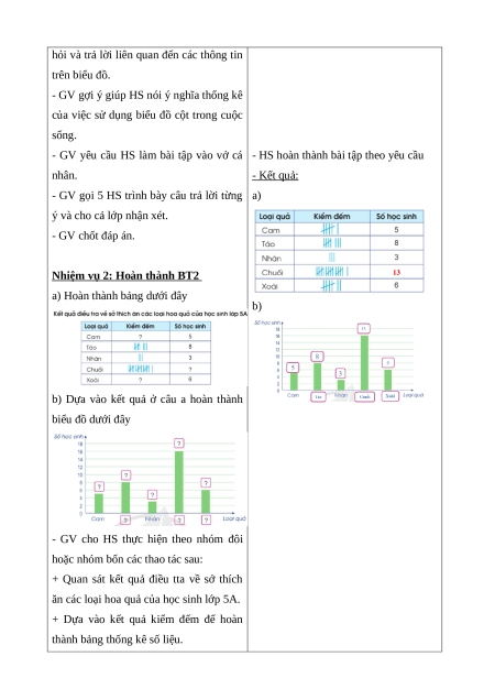 - HS hoàn thành bài tập theo yêu cầu - Kết quả: a) 5 học sinh.