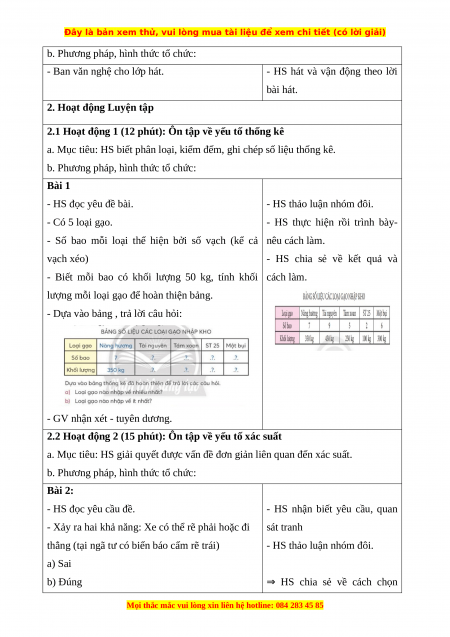 Giáo án Ôn tập về một số yếu tố thống kế và xác xuất Toán 3 Chân trời sáng tạo
