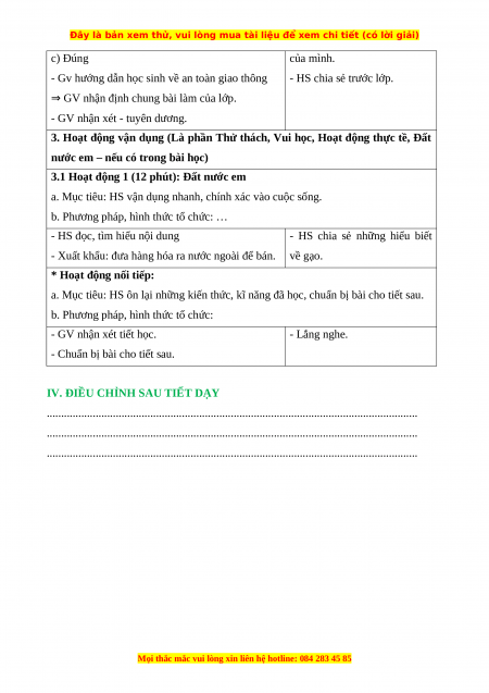 IV. ĐIỀU CHỈNH SAU TIẾT DẠY
