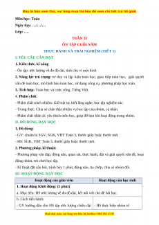 Ngày dạy: …/…/… Lớp: …. TUẦN 35 ÔN TẬP CUỐI NĂM