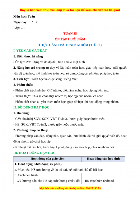 3. Tích hợp: Toán học và cuộc sống, Tiếng Việt. 4. Phẩm chất: