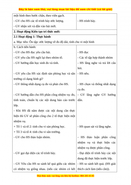 + Tổ 1 và tổ 2: tính chu vi sàn phòng học.